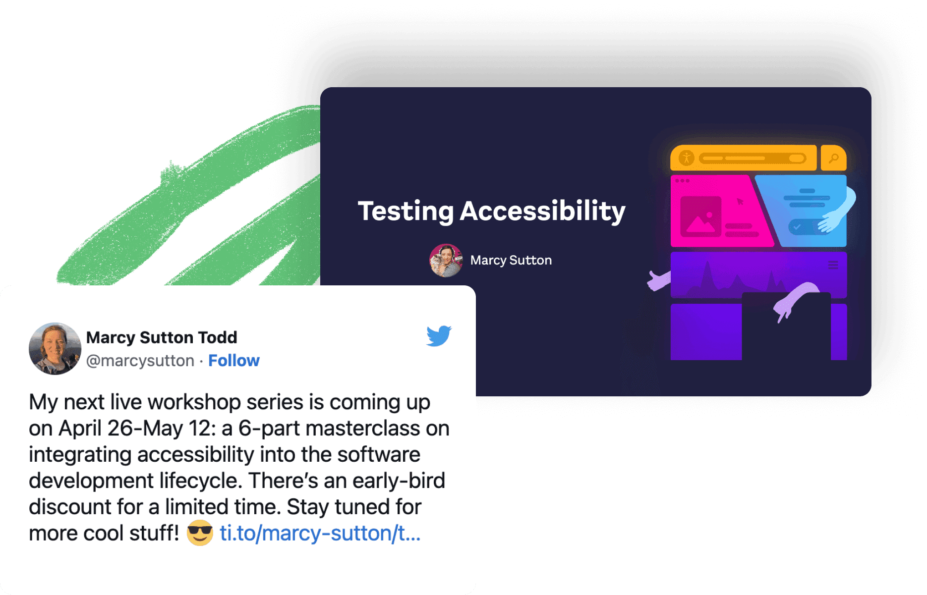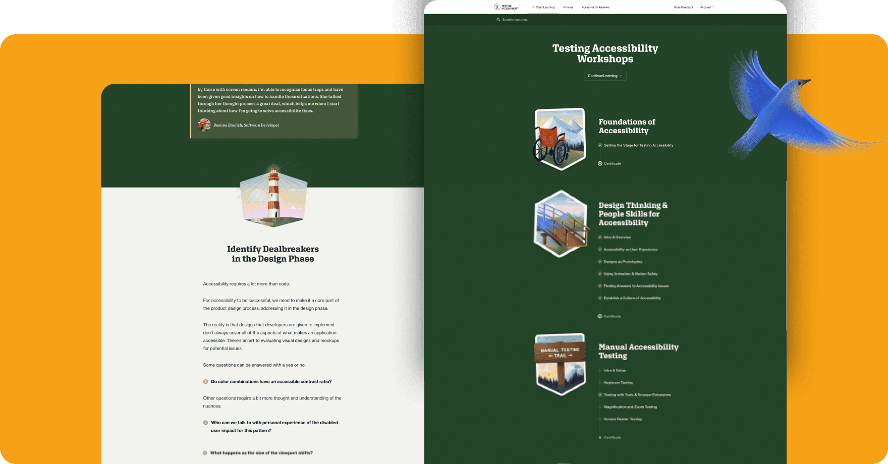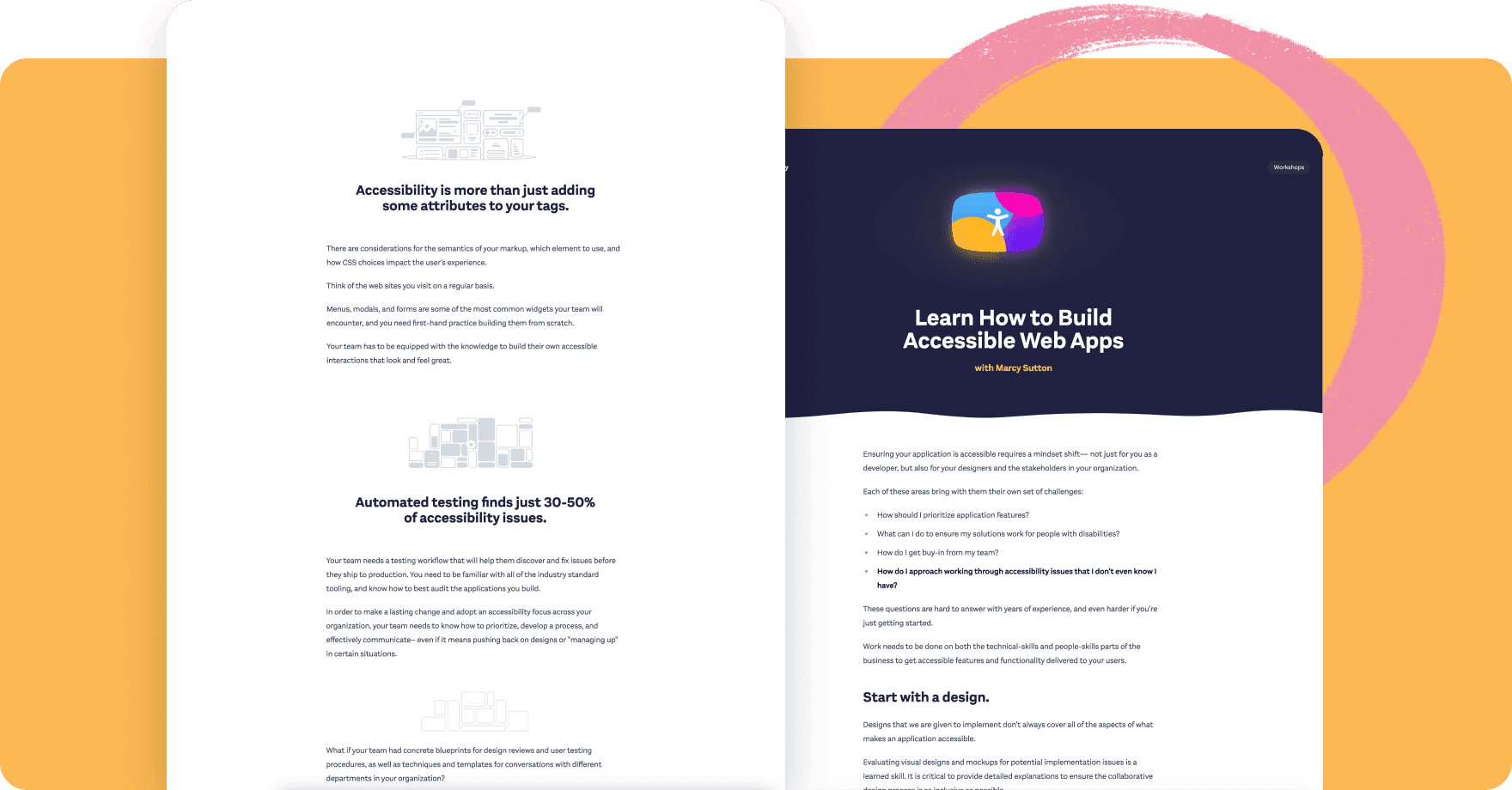 “This will become a canonical resource for learning how to embed accessibility into web applications. Having it be a natural choice for what's considered essential training for web developers. Very hands-on. I want people to come away with quick wins and tips immediately. In a one-day workshop, I have way too much stuff to cover. With this, we can really elaborate and provide more.“