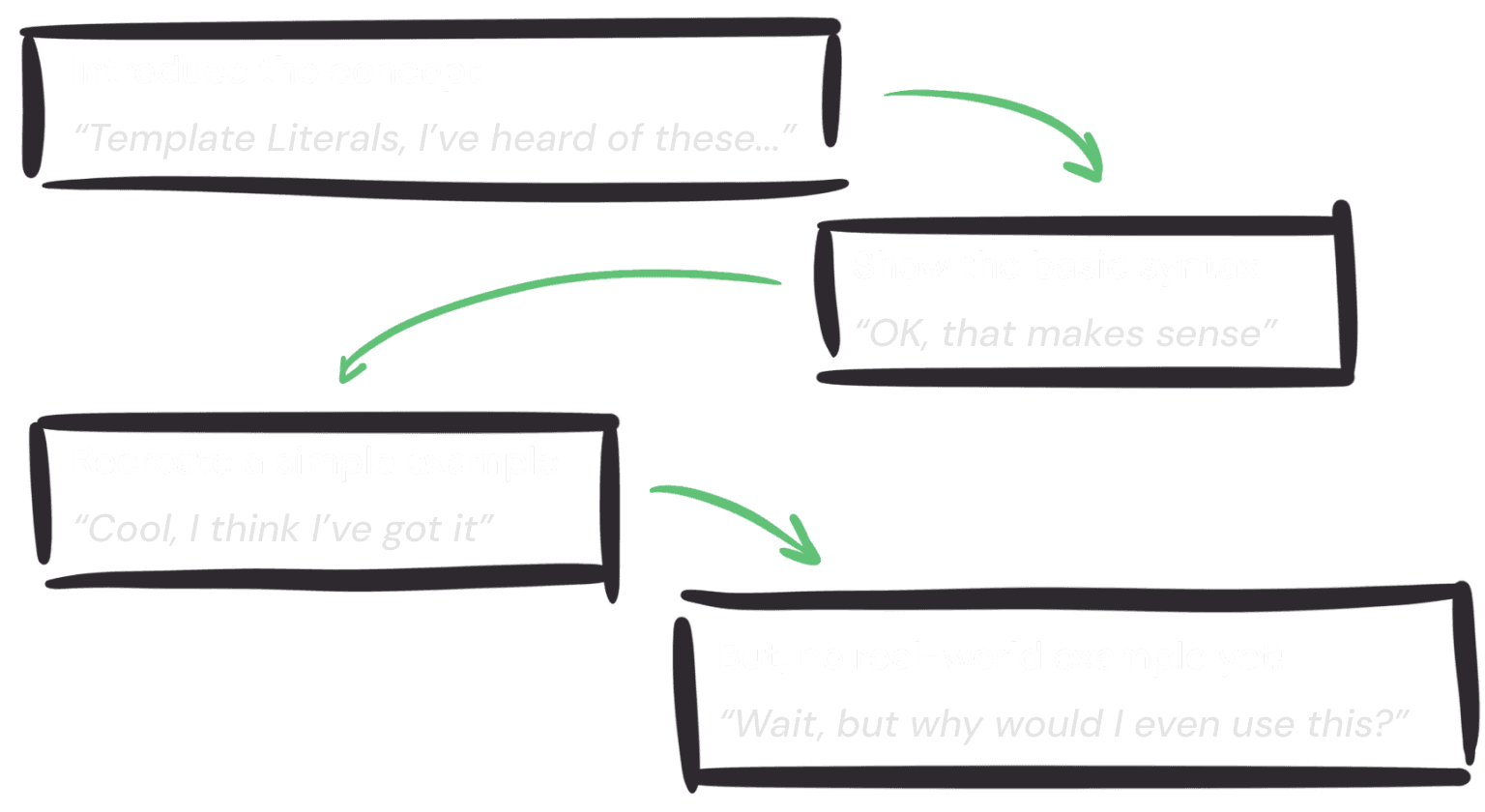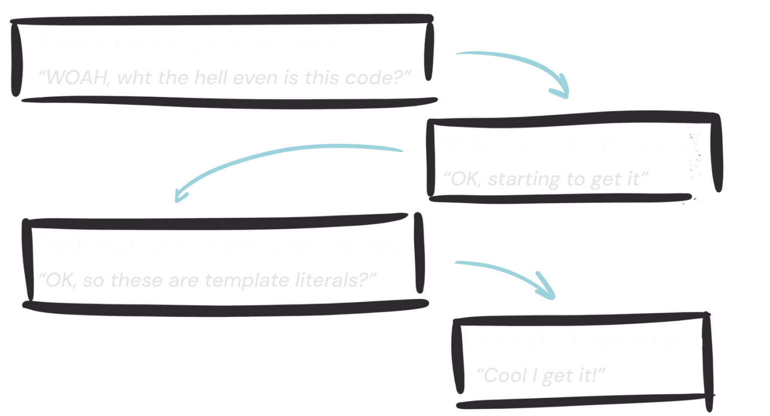 The bigger shift was towards an "example-first" approach for the workshop. Matt started with complex code samples, then explained the concepts, guiding learners to solve problems before revealing solutions. This method aligned with his teaching style and proved beneficial for learners.
