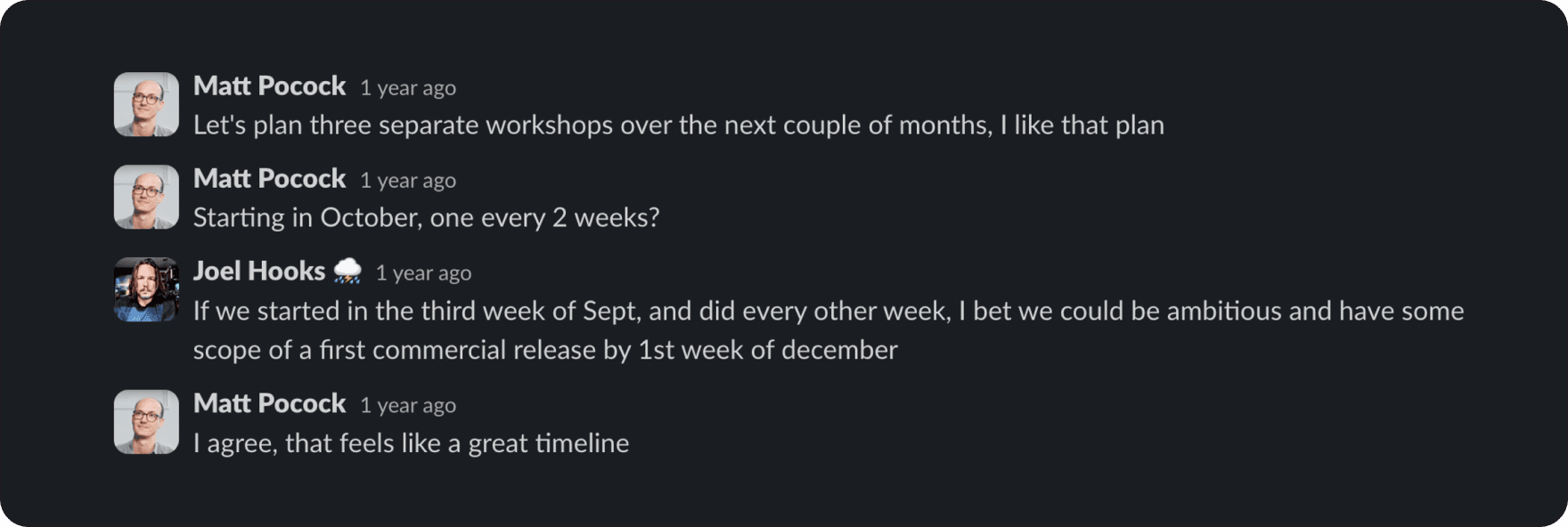 Throughout the process, we talk through the topics and scope of what learning material Matt produces. Occasionally that’s through planning call, but a lot of our work together is async over Slack.